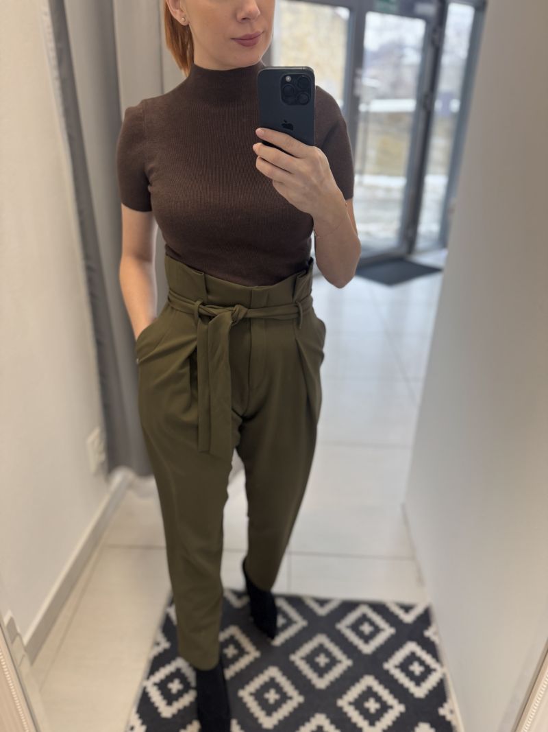 Tieto elegantné dámske nohavice v nádhernej zelenej farbe sú dokonalým spojením sofistikovanosti a pohodlia. Ich dokonale padnúci strih lichotí postave, zatiaľ čo príjemný a kvalitný materiál zabezpečí celodenný komfort.