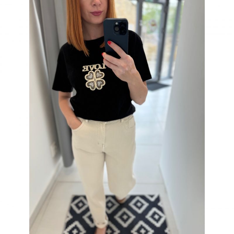Dodaj svojmu outfitu šmrnc s týmto moderným čiernym dámskym tričkom s krátkym rukávom. Tričko zdobí výrazný nápis LOVE, ktorý dopĺňa štýlový motív