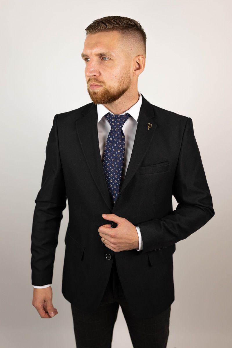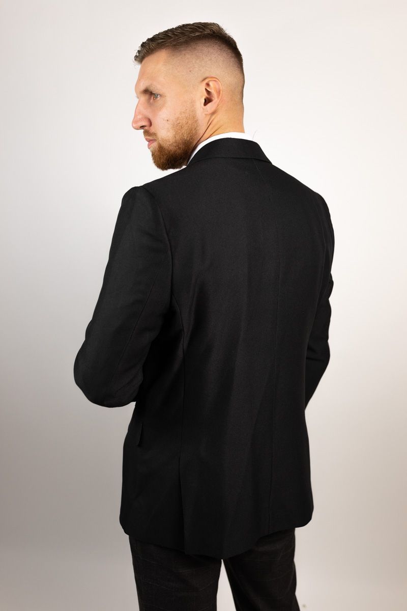 Pánske čierne sako, je neoddeliteľnou súčasťou šatníka každého muža. Toto sako je ale originálne práve vo svojich detailoch.Sako ma jedno naprsne vrecko a dve vrecká na bokoch. Odporúčame kombinovať k elegantným nohaviciam ale aj k rifliam.